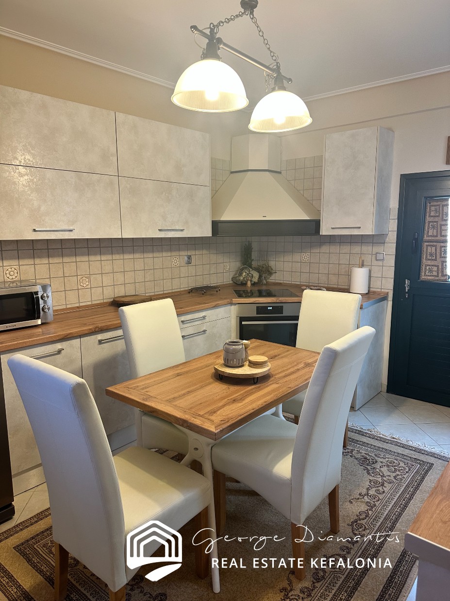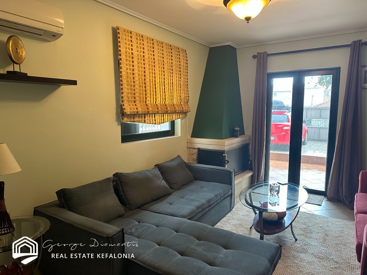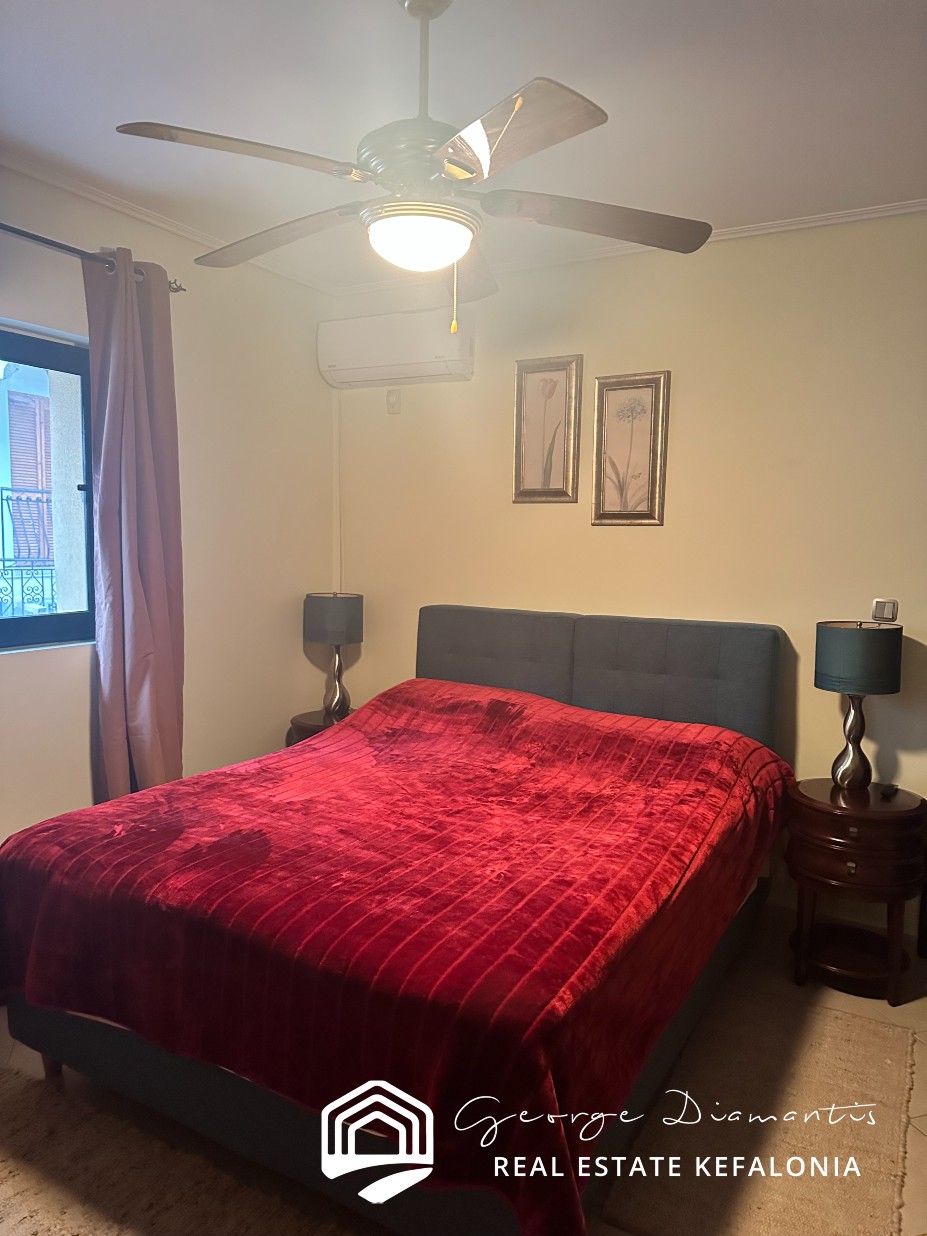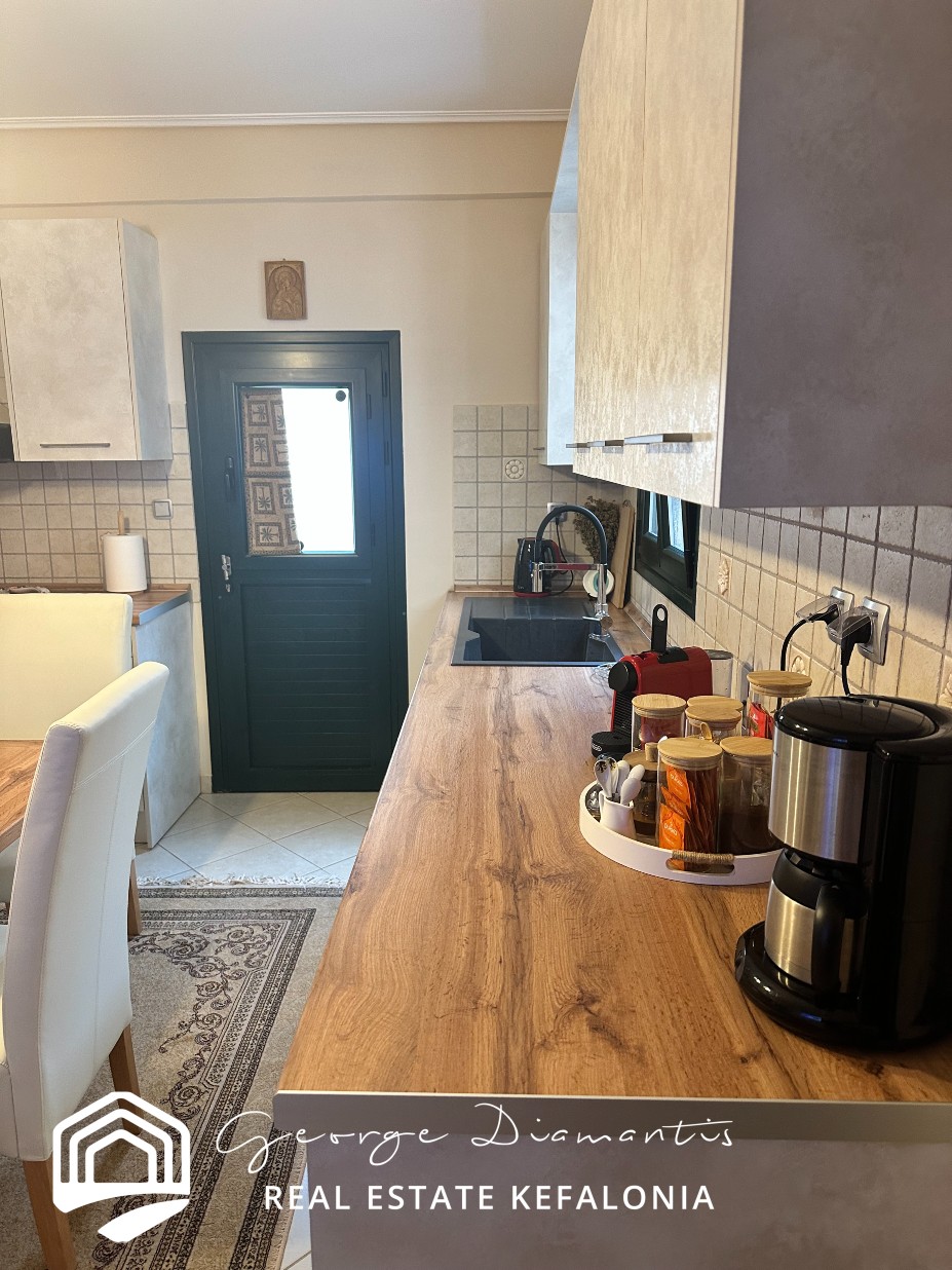 For sale is a ground floor apartment of 90 sq.m. within the settlement of Agia Efimia, in Pylaros. It has been renovated since 2023 and consists of two master bedrooms, a kitchen, a living room, a bathroom and an en suite WC. It has storage closets and a loft for additional storage space, it has three air conditioners installed in the living room and two bedrooms, an alarm system and security cameras. The apartment has an open parking space (garage), a courtyard with vertical awnings and fruit trees. It is located in a prime location, in a quiet neighborhood, just 300 meters from the port of Agia Efimia. It is suitable for a permanent or holiday home, but could also be used for a tourist investment, giving a good income to its owner.
