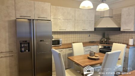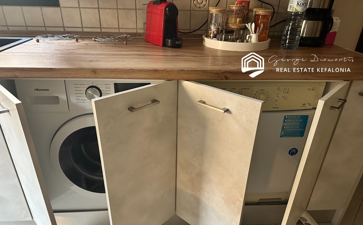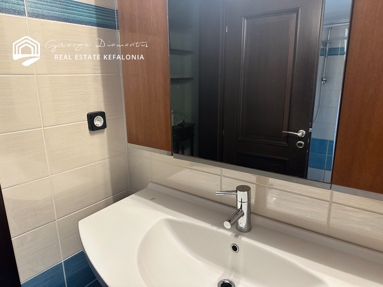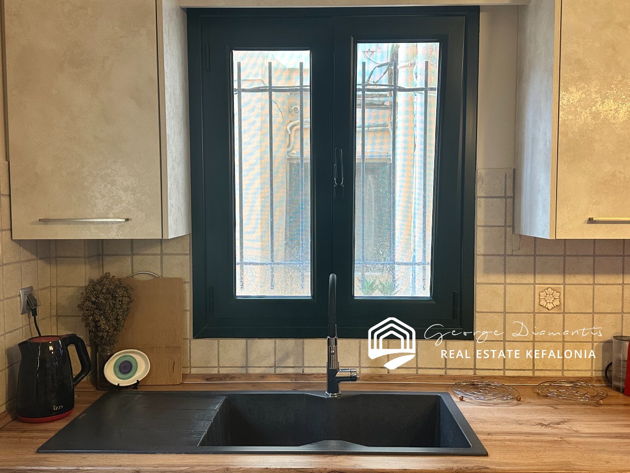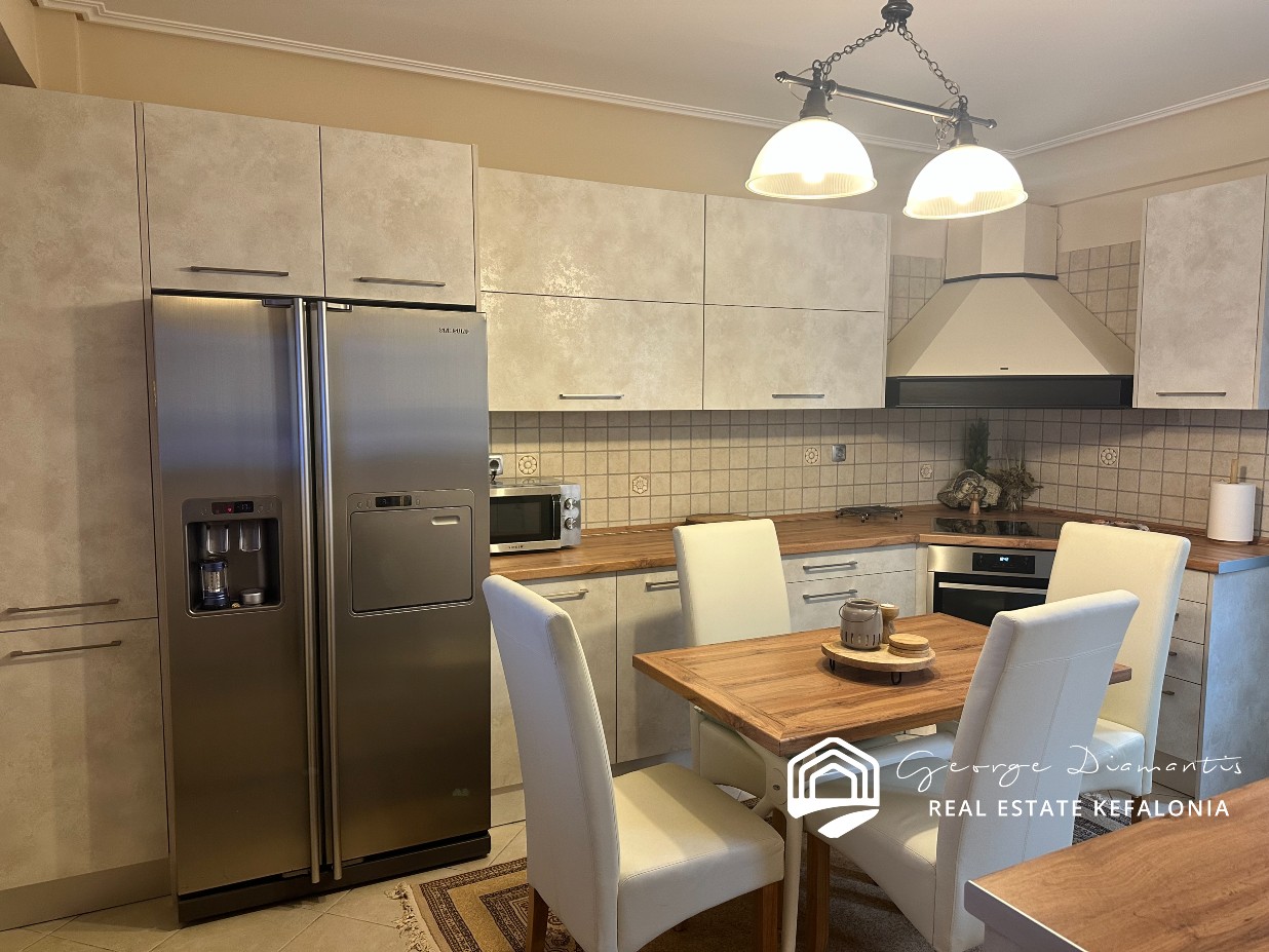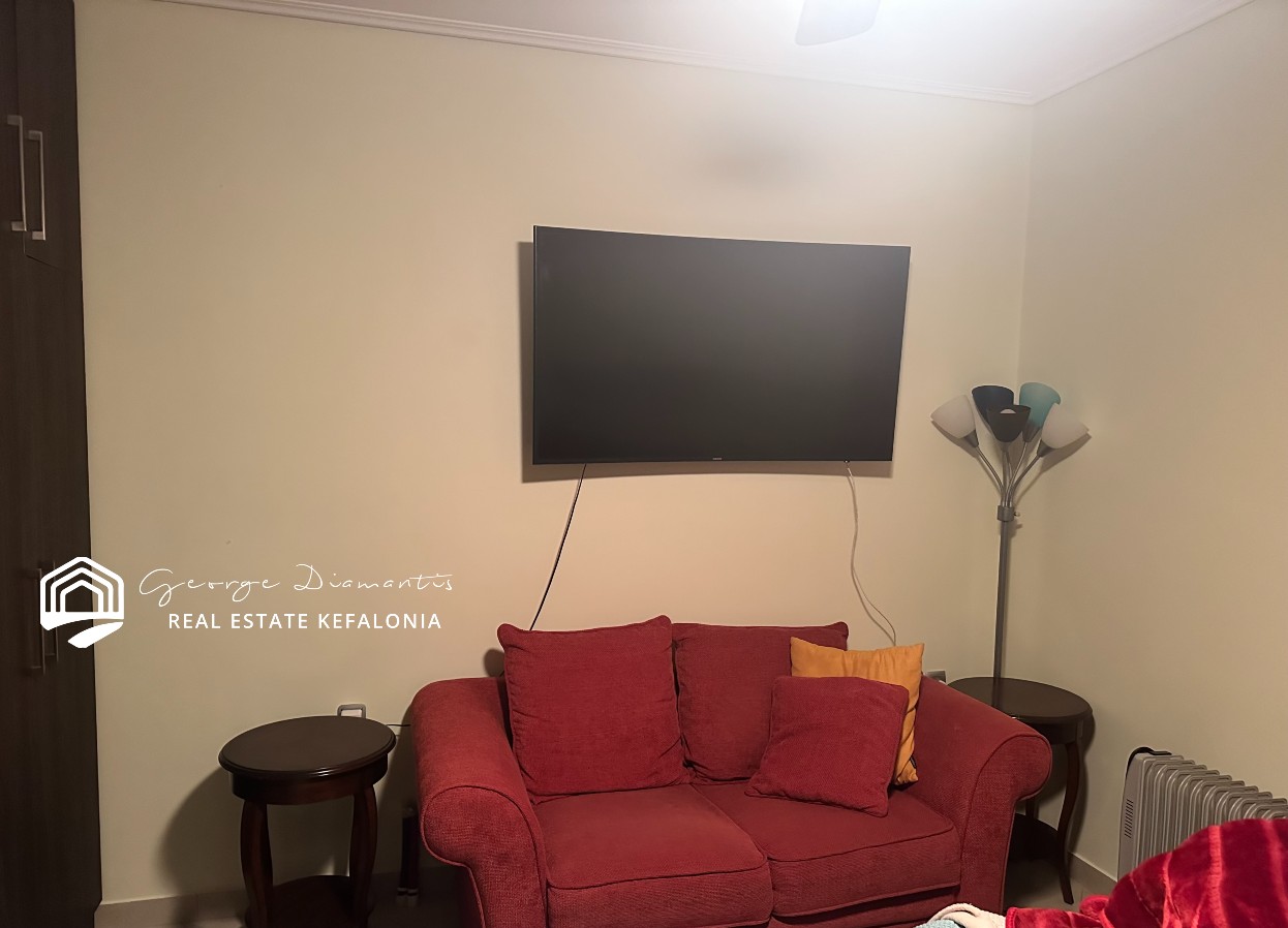 For sale is a ground floor apartment of 90 sq.m. within the settlement of Agia Efimia, in Pylaros. It has been renovated since 2023 and consists of two master bedrooms, a kitchen, a living room, a bathroom and an en suite WC. It has storage closets and a loft for additional storage space, it has three air conditioners installed in the living room and two bedrooms, an alarm system and security cameras. The apartment has an open parking space (garage), a courtyard with vertical awnings and fruit trees. It is located in a prime location, in a quiet neighborhood, just 300 meters from the port of Agia Efimia. It is suitable for a permanent or holiday home, but could also be used for a tourist investment, giving a good income to its owner.
