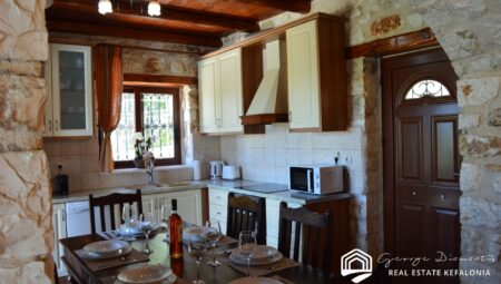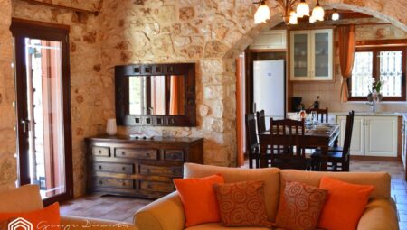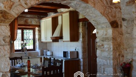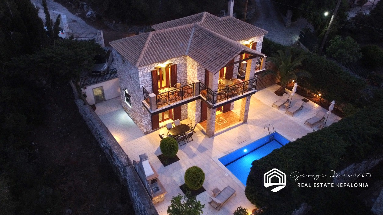 For sale a stone two-storey villa of 136 sq.m., on a plot of 470 sq.m. within a settlement, in Antipata in Erissos. Its location makes it unique as it is located in a quiet environment, surrounded by greenery, offering the visitor privacy and tranquility. On the ground floor of the villa there is the kitchen, and in an open space the living room and dining room. A wooden staircase leads to the first floor where there are 3 en suite bedrooms. All three bedrooms have their own balcony from which they have a unique view that reaches the sea. There is a swimming pool in the garden, and a parking space. The villa is ideal for a holiday home, but could also be used for a tourist investment, giving the owner a good income.