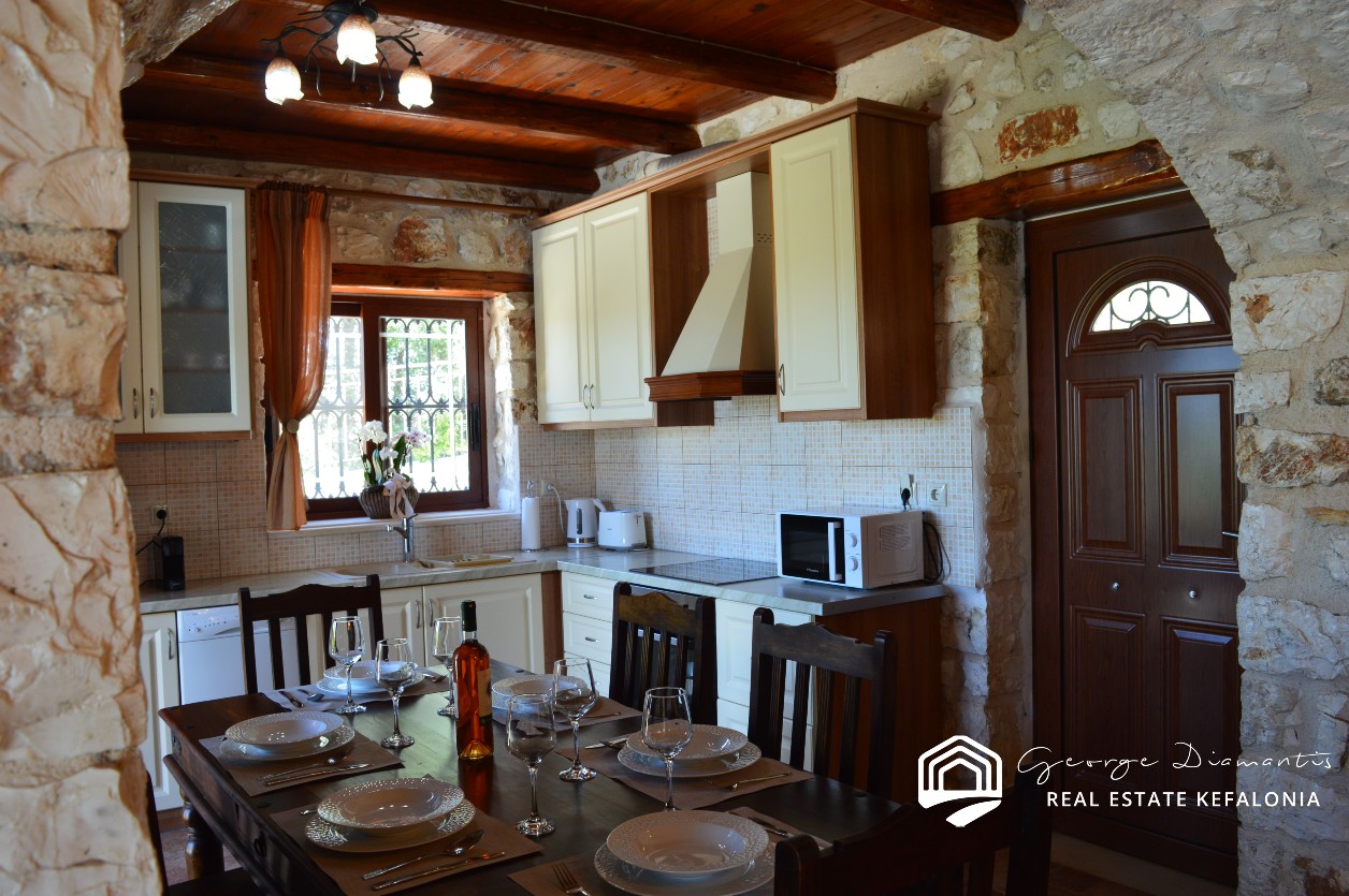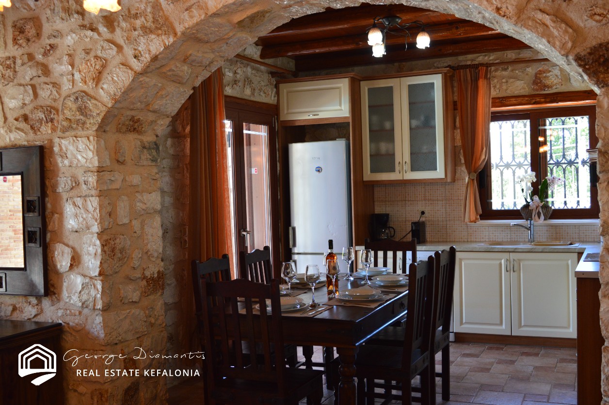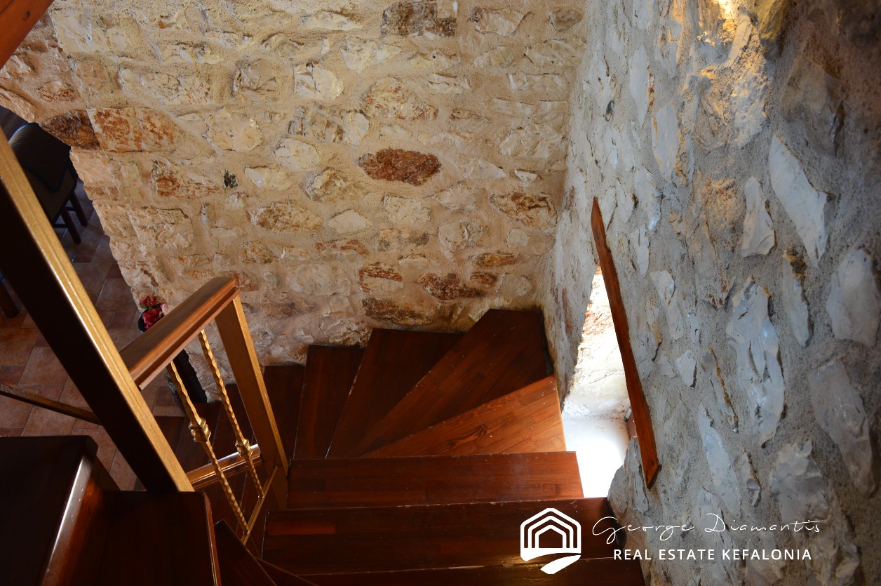 For sale a stone two-storey villa of 136 sq.m., on a plot of 470 sq.m. within a settlement, in Antipata in Erissos. Its location makes it unique as it is located in a quiet environment, surrounded by greenery, offering the visitor privacy and tranquility. On the ground floor of the villa there is the kitchen, and in an open space the living room and dining room. A wooden staircase leads to the first floor where there are 3 en suite bedrooms. All three bedrooms have their own balcony from which they have a unique view that reaches the sea. There is a swimming pool in the garden, and a parking space. The villa is ideal for a holiday home, but could also be used for a tourist investment, giving the owner a good income.