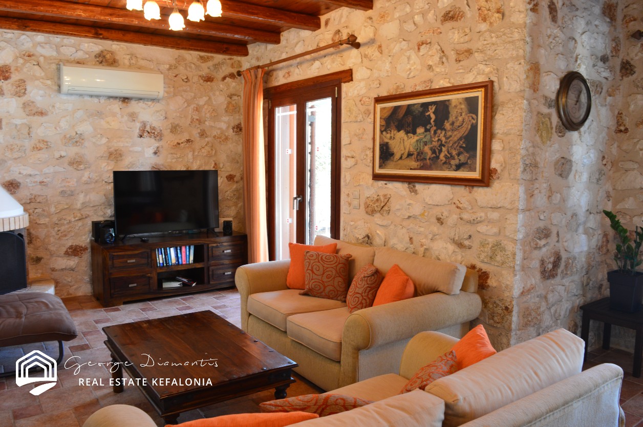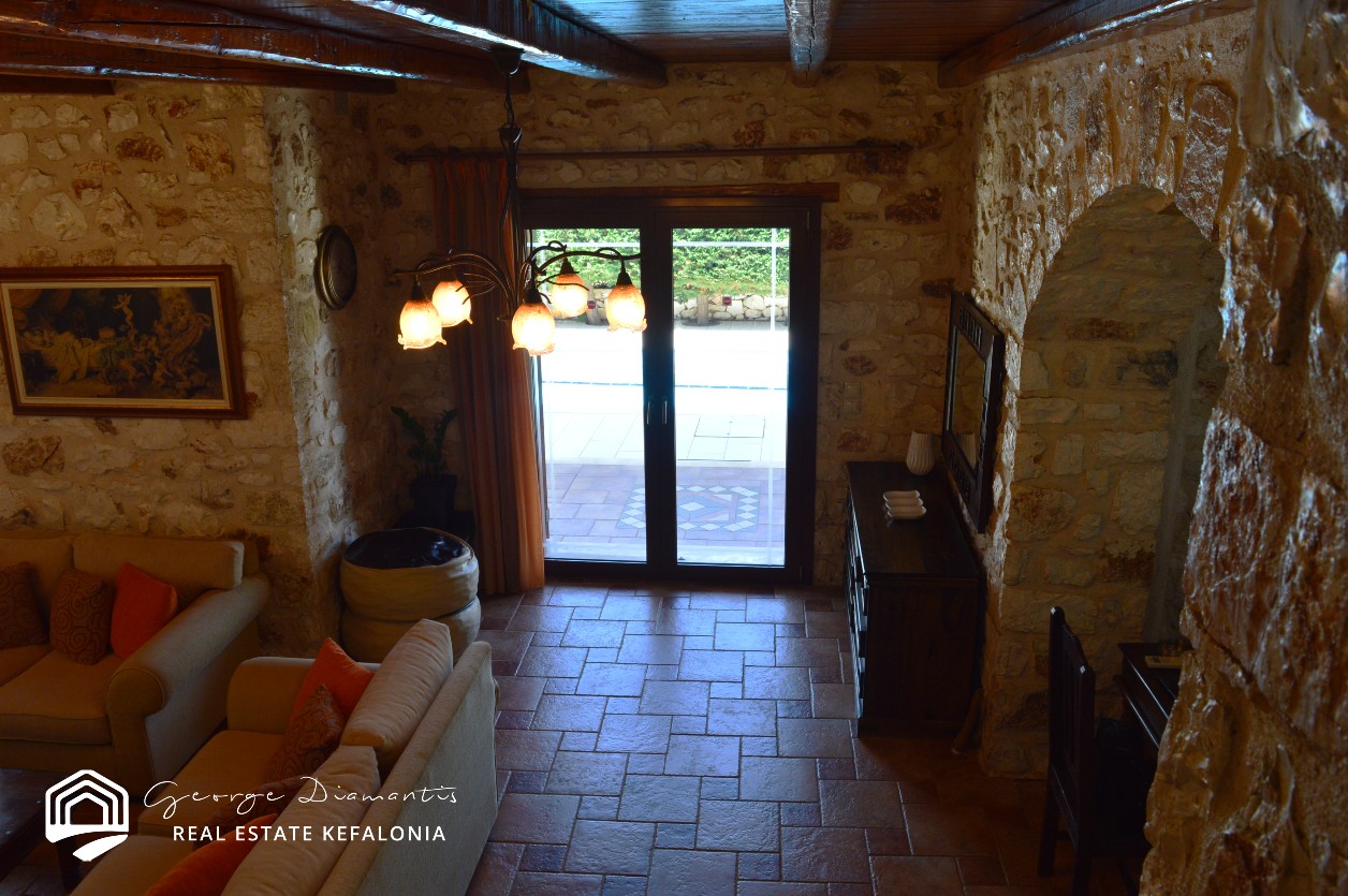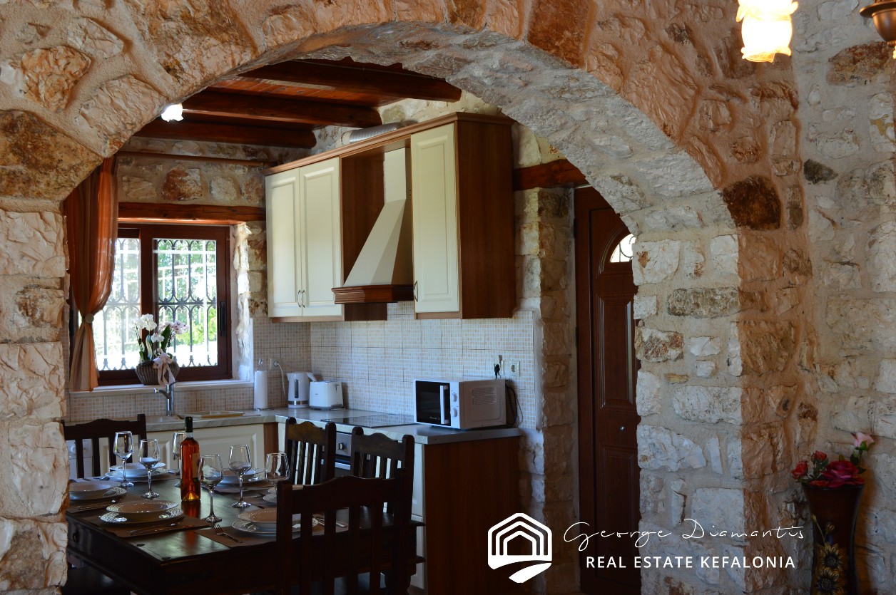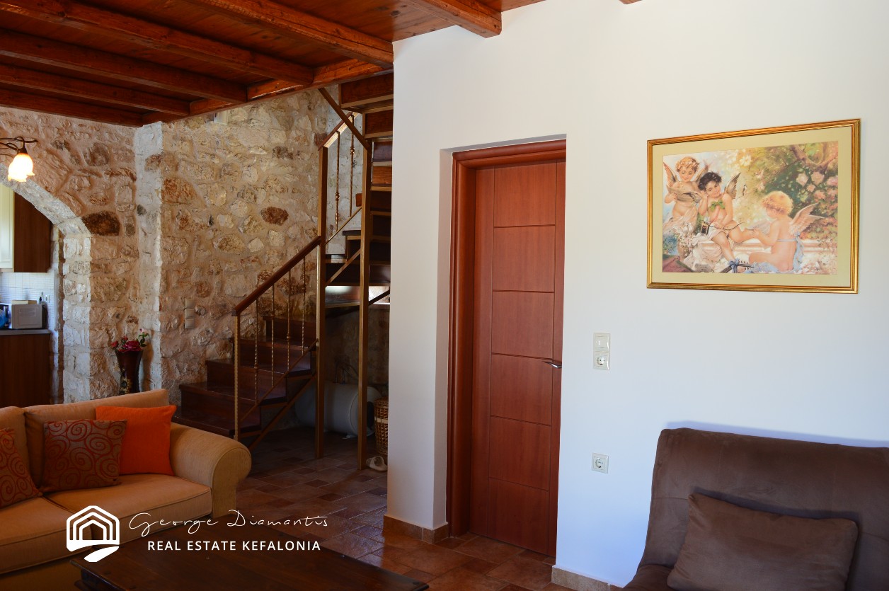 For sale a stone two-storey villa of 136 sq.m., on a plot of 470 sq.m. within a settlement, in Antipata in Erissos. Its location makes it unique as it is located in a quiet environment, surrounded by greenery, offering the visitor privacy and tranquility. On the ground floor of the villa there is the kitchen, and in an open space the living room and dining room. A wooden staircase leads to the first floor where there are 3 en suite bedrooms. All three bedrooms have their own balcony from which they have a unique view that reaches the sea. There is a swimming pool in the garden, and a parking space. The villa is ideal for a holiday home, but could also be used for a tourist investment, giving the owner a good income.