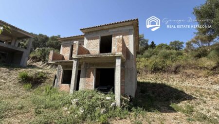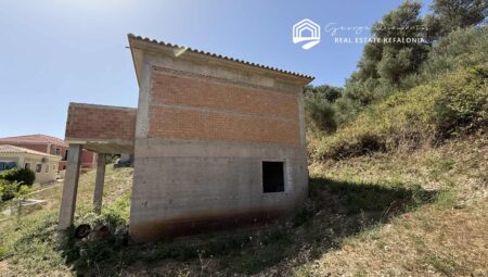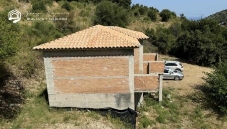 For sale a two-storey unfinished building of 110 sq.m. on a plot of 600 sq.m. in Divarata, in Pylaros, consisting of a kitchen, living room and dining room in one room, bathroom, and two bedrooms with their own bathroom. The detached house is located in a lush green area, with unobstructed views, on the road leading to the most famous beach of Kefalonia, Myrtos. It has parking spaces, while there is the possibility of building a swimming pool. It is suitable for a holiday home, but could be used as a tourist investment.